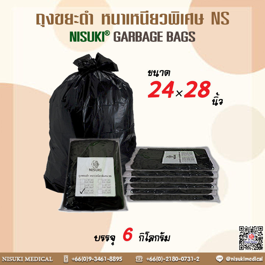 - ถุงขยะเนื้อหนาและเหนียวทนทาน รับน้ำหนักได้ดี ไม่ฉีกขาดง่าย